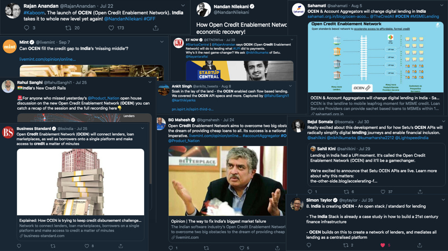 OCEN is an attempt to recognise that in order to truly widen the net of financial inclusion in India, we need to empower the various entities and platforms in our tech ecosystem to play key roles in a reimagined lending value chain (whew that’s a mouthful). OCEN is an acknowledgement that the access points to the formal credit system should exist beyond the walls of just banks and NBFCs.