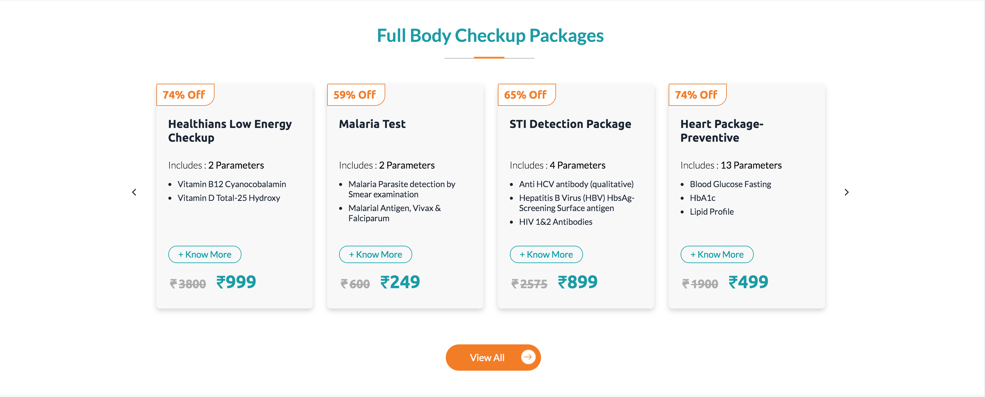Unlike the companies from the previous section, Healthians’ focus is not smart reports but instead on-demand B2C diagnostics services. Consumers in 45 cities can visit the Healthians website/app and book themselves a variety of diagnostics services. The kicker for consumers is that Healthians is able to charge up to 30% less than its competition while also providing a 100% accuracy guarantee. This means that if a doctor expresses doubt in the accuracy of a Healthians report, the company will issue a full refund.