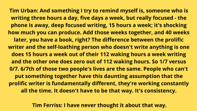 Tim Ferriss: I donât expect an answer here. So feel free not to answer if you prefer, but what did you discover? What were you actually writing about?