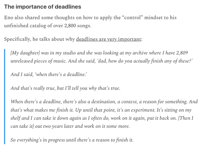 24. Brian Eno on deadlines (h/t SatPost by Trung Phan)