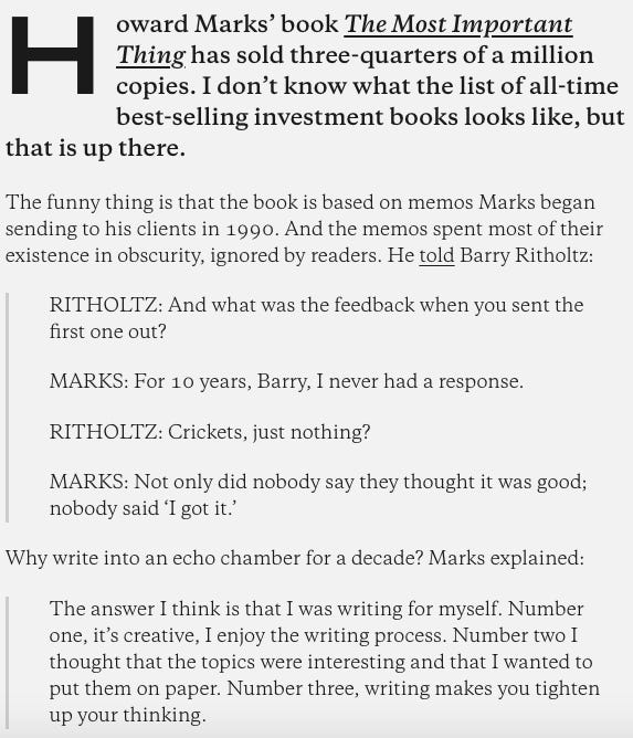 96. Howard Marks on writing for yourself (h/t Morgan Housel)