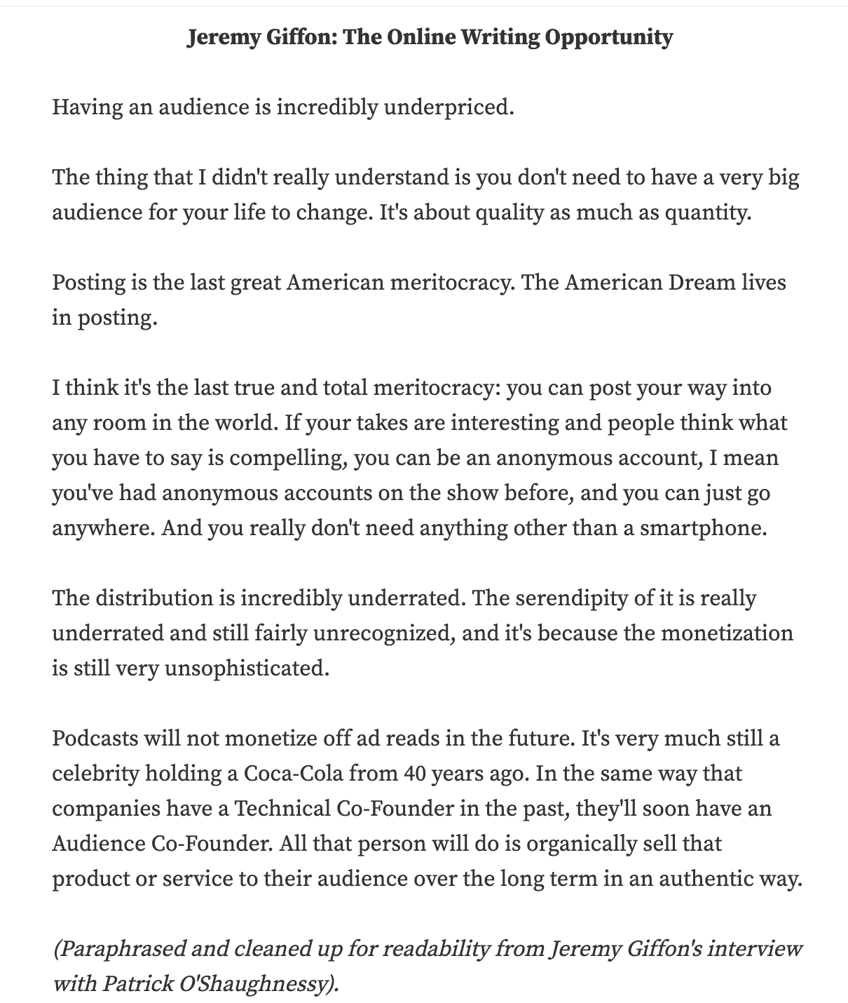 9. Jeremy Giffon on the online writing opportunity (h/t David Perell)