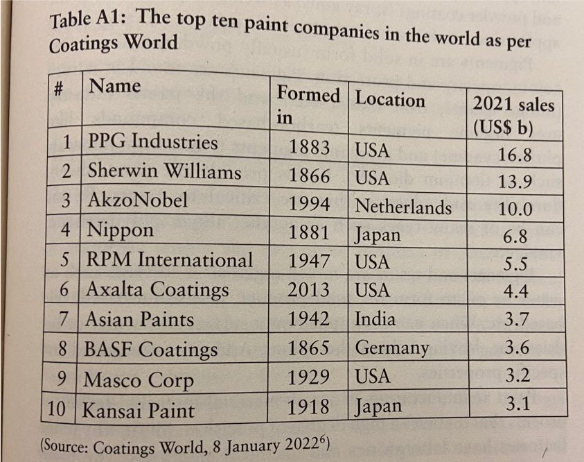 I didn’t know anything about Asian Paints, Champaklal Choksey, or the paints industry. But I’ve been listening to Anupam’s podcast over the years, so I ordered the book, and spent the last few weeks getting up to speed with, uh, the paints scene in India. I was surprised to learn that: