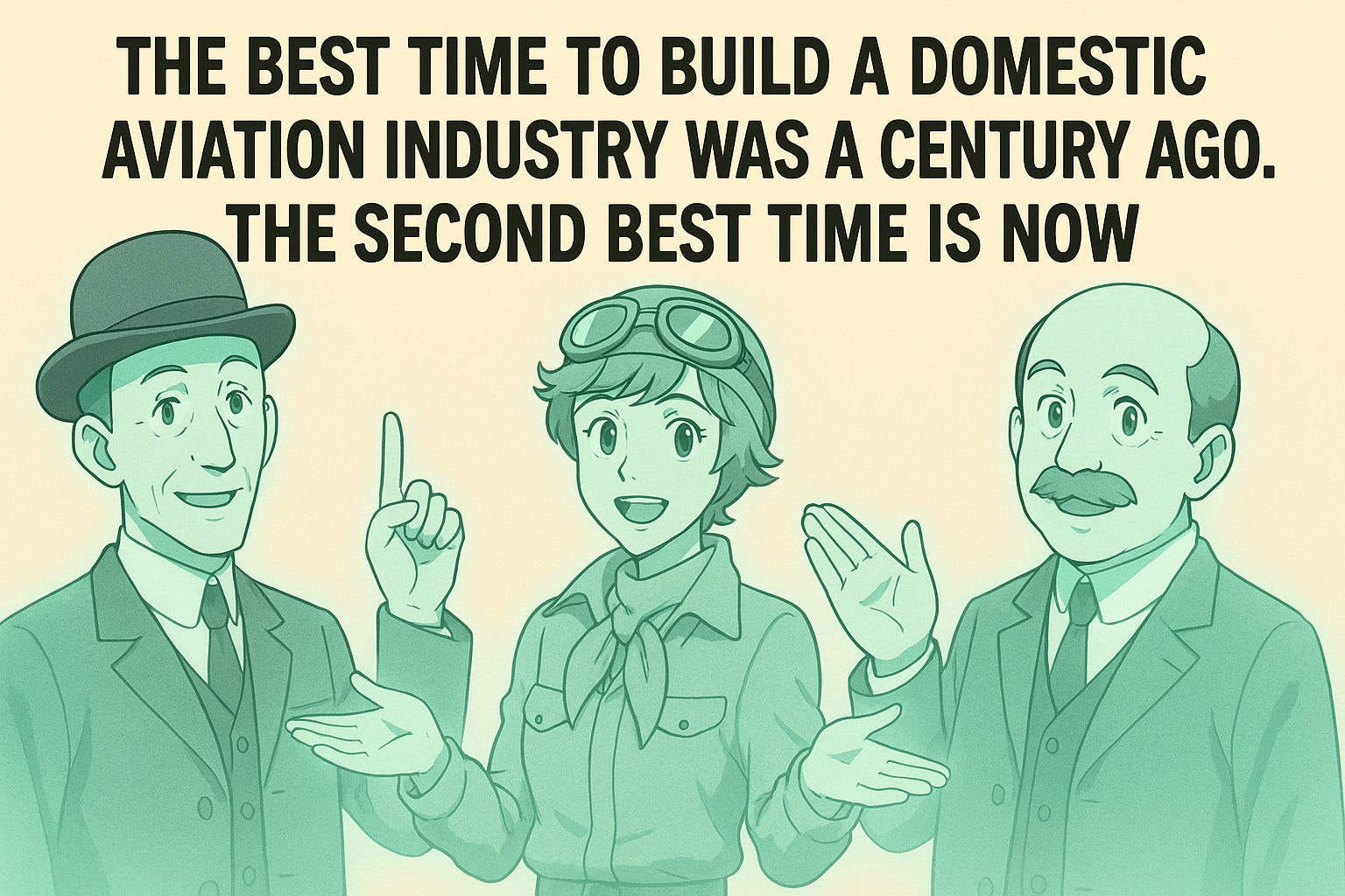 In summary, there is real momentum building. But this movement needs a bigger push. We must have more conviction that commercial aircraft manufacturing is a problem worth working on full-time, not just as a side project or research thesis but as a national mission built by private risk.