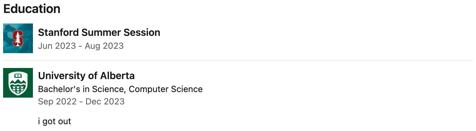 And so I decided to go to University of Alberta the same year to pursue Computer Science with a minor in Physics. Side note: A funny glitch on my transcript still says I minored in Polish. I’ve never taken a Polish course in my life.