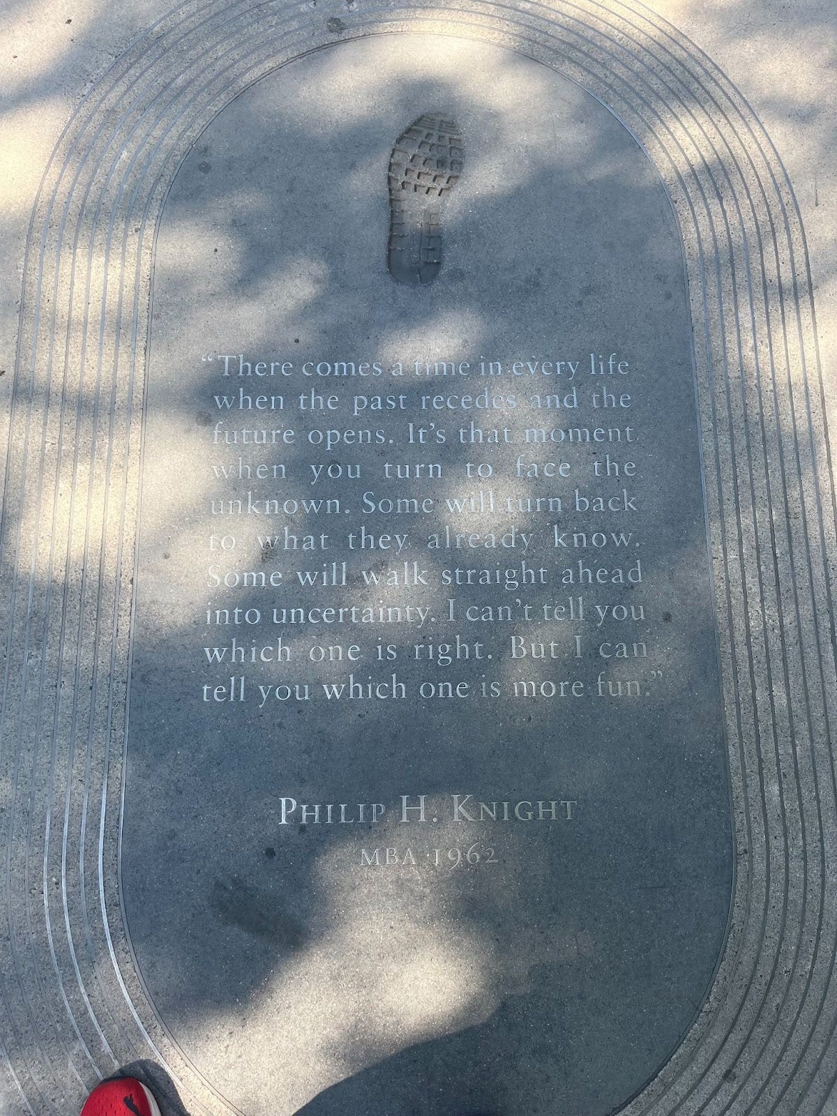 One day, while walking back to my dorm, I saw a quote etched into the concrete on one of the busiest roads on campus:
